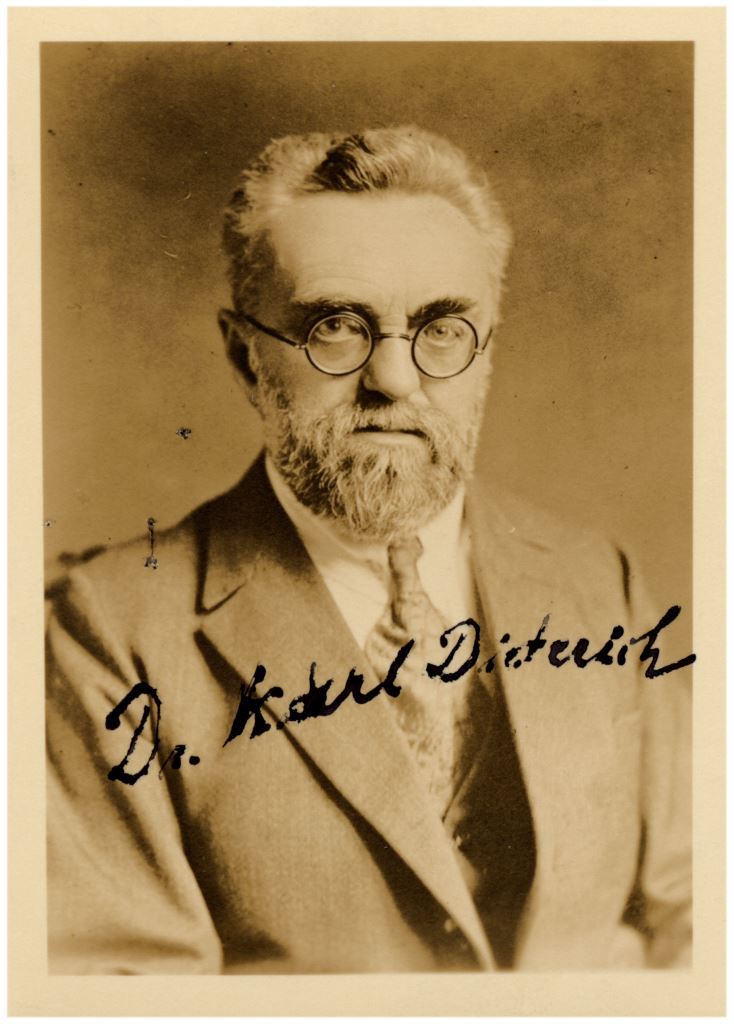 Μετά την υφηγεσία του στο Πανεπιστήμιο της Λειψίας (1909) εργάστηκε εκεί –στην αρχή ως υφηγητής και από το 1922 ως την συνταξιοδότησή του το 1935 ως έκτακτος καθηγητής με αντικείμενο την Μεσαιωνική και Νεοελληνική Γλώσσα και Λογοτεχνία. Η δραστηριότητά του αυτή διακόπηκε τα έτη 1916–1918, κατά τα οποία ο Ντίτεριχ εργάστηκε πρώτα ως γραμματέας και διευθυντής τομέα στο Ινστιτούτο Βαλκανικών Σπουδών της Βοσνίας-Ερζεγοβίνης στο Σαράγιεβο, κι ακολούθως ως διερμηνέας στη Σχολή Διερμηνέων στο Βερολίνο. Το 1917 συμμετείχε στην αποστολή διανοουμένων και επιστημόνων με ελληνικά αντικείμενα ενδιαφέροντος, οι οποίοι πήγαν κατά τη διάρκεια του Α΄ΠΠ στο Γκέρλιτς (Görlitz) για γλωσσολογικές, μουσικολογικές και άλλες μελέτες, αξιοποιώντας τη στάθμευση ενός ελληνικού στρατεύματος. Το Επίτομο λεξικό της νεοελληνικής ομιλούμενης και γραπτής γλώσσας (Taschenwörterbuch der neugriechischen Umgangs- und Schriftsprache) εθεωρείτο για καιρό ως έργο αναφοράς και κυκλοφορούσε σε διαρκείς επανεκδώσεις.